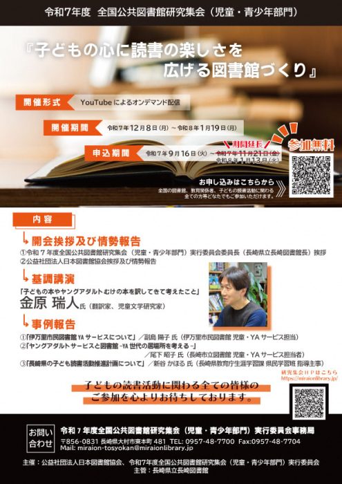 ①令和7年度全国公共図書館研究集会(児童・青少年部門)実行委員会委員長(長崎県立長崎図書館長)挨拶