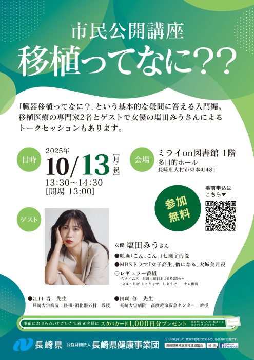 市民公開講座「移植ってなに??」を開催します | ミライon図書館