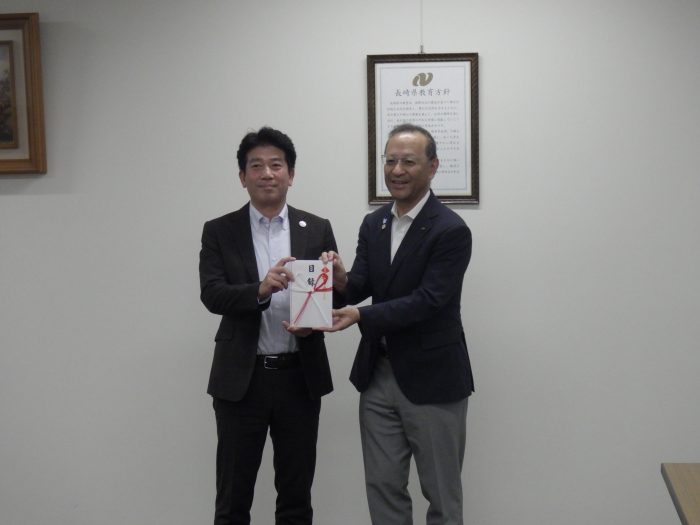第一生命労働組合長崎支部から、図書購入費として寄附金12万円をいただくこととなり、令和7年10月1日(水曜日)に県庁にて贈呈式を執り行いました。