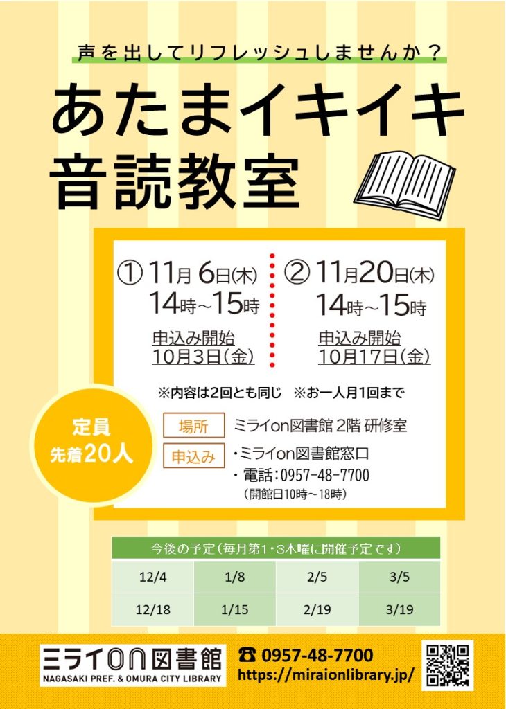 「あたまイキイキ音読教室」は、名作文学や昔話、詩などを声に出して読みあう会です。間違えても大丈夫!技術や声の大きさなどを気にせず無理のない範囲で音読を楽しみましょう。